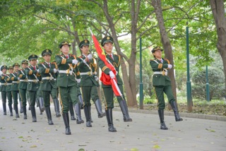 2022年10月1日中国人民大学国旗护卫队在求是园举行升旗仪式。